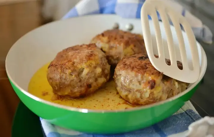 Sirva este sabroso plato con albóndigas, pollo frito, filete, pavo o pastel de carne.